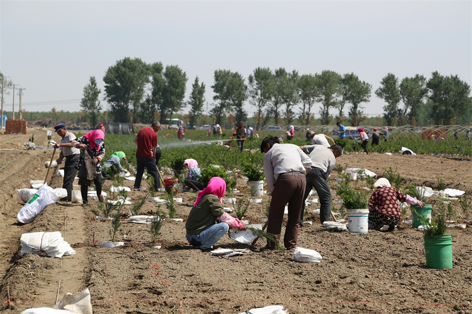 不論狂風暴雨,不管烈日酷暑,他們以公司為家,默默守護這片土地上那一抹綠色的風景。人們能經??吹剿麄兒顾疂裢敢卤场⒗鄣米卟粍勇返臉幼樱伤麄儏s沒有怨言、沒有牢騷,認真做好一點一滴,用實際行動建造出一片綠海。截至7月10日,東北紅豆杉基地建成大棚400棟、栽植東北紅豆杉2800000株,平均成活率超過90%,反季節全光噴霧栽植技術應用成功,東北紅豆杉規?;N植難題被全面解決,現已順利進入管護階段。